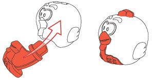Assemble the chickens by clicking the 2 parts together as shown in the illustration.