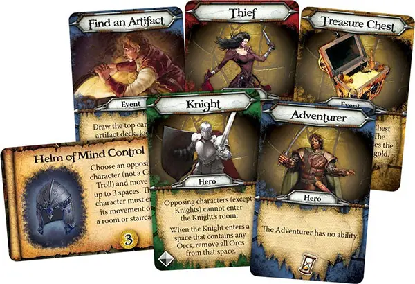 Rooms are scored at various times during the game, earning gold for the player with the most heroes in that room. When the game ends, the player with the most gold wins.