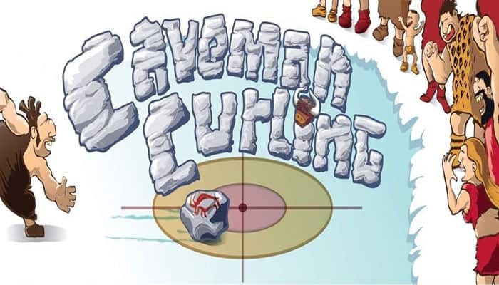 On a frozen lake, two tribes of prehistoric men compete in a match of Caveman Curling