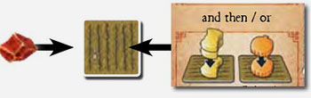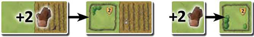 Instead of Grain, you may sow Vegetables. Take 1 Vegetable from your personal supply and put it on an empty Field. Then put 1 Vegetable from the general supply on top of your sown Vegetable.
