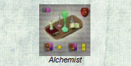 The alchemist allows you to exchange cubes for gold. A player can either pay 2 cubes (of any good) and get 1 gold cube, or pay 4 cubes (of any good) and get 2 gold cubes.
