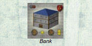 The bank allows you to exchange deniers for gold cubes. The player can either pay 2 deniers and get 1 gold cube, or pay 5 deniers to get 2 gold cubes.