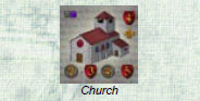 The church allows you to exchange deniers for prestige points. The player can either pay 2 deniers and get 3 points, or pay 4 deniers and get 5 points.
