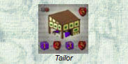 The tailor allows you to exchange cloth cubes for prestige points. The player may either choose to pay 1 cube and get 2 points, or to pay 3 cubes and get 6 points.