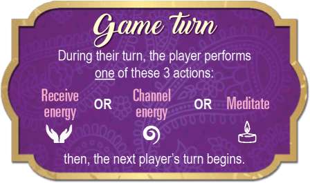 Each player closes their eyes and randomly takes one of the Meditation tokens, which they place on their board, next to the same-colored Chakra.