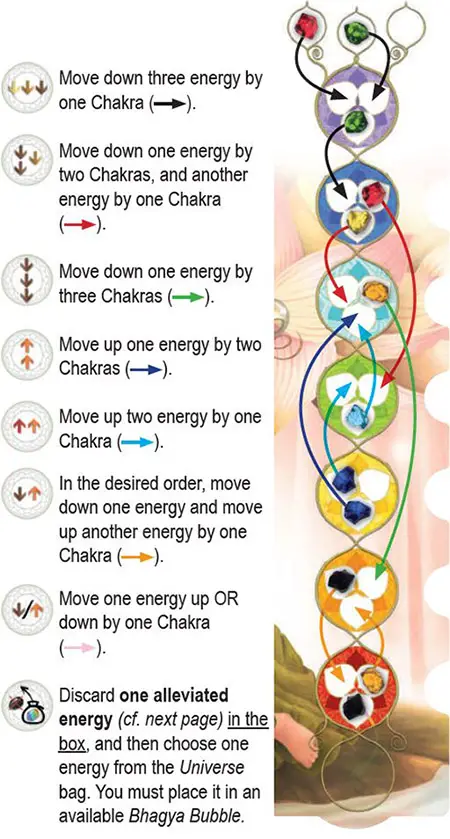 or directly on a Chakra, after having placed an Inspiration token in the notch next to the Chakra; each Chakra can hold up to 3 energy.
