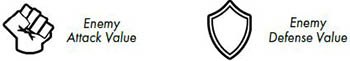 Combat against Trolls, Draugr, Krakens, and Monsters (referred to collectively as enemies) is resolved in the same way. Enemies have an Attack Value and a Defense Value. In order to defeat an enemy, a player must deal damage equal to or greater than the enemy's Defense Value (referred to as lethal damage).