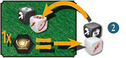 Discard Viking Warrior dice equal to the Attack Value of the enemy. Reduce these losses by 1 for each Shield Result rolled.