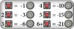Sets of Enemies (1 of each color) - The townspeople are impressed with your ability to brave varying combat conditions! Score 5 Glory for each complete set.