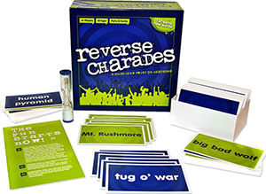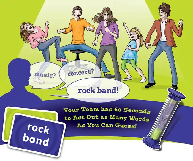 Each team selects a guesser (everyone gets a turn guessing) and the rest of the team acts out the words. The other team holds the word cards for only the actors to see and flips the enclosed timer.