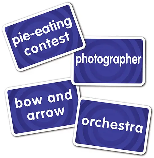 Shhh! Not a peep among the team members acting. You lose a point if you speak or "mouth" any words to each other or the guesser. The use of objects (or even people) in the room is definitely permitted.