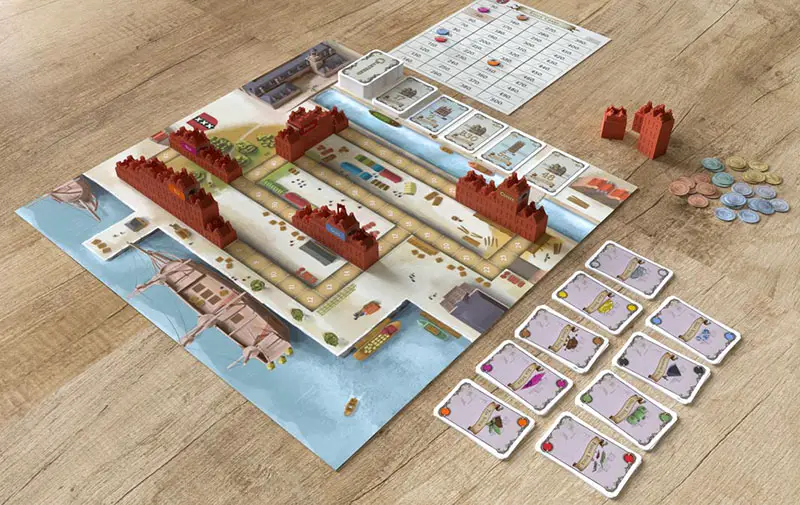 | Players | Board | Open market | Number of warehouses | Building cards | Starting hand | Starting capital |