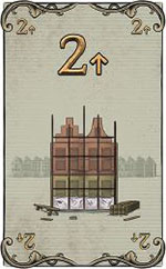Play one of the building cards from your hand and place a new warehouse on the designated lot, or place it on top of an already built warehouse if you play a level card. The result is 2a, 2b, 2c or 2d.
