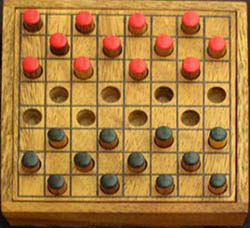 Het doel van het spel is om alle schijven van de andere speler te vangen (slaan) of hen te blokkeren zodat ze niet kunnen bewegen.