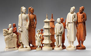 There is a wide variety of chess sets to choose from. They range from the simple and cheap (plastic pieces) to Ivory, Oak or ebony boards with heavyset detailed pieces that exhibit extravagance.