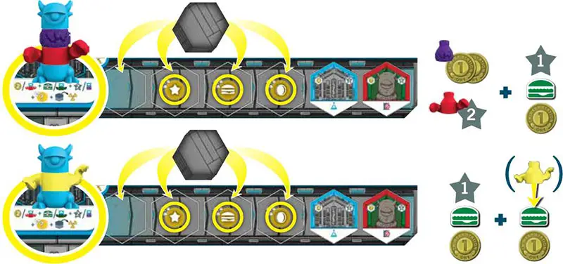 Note: You must be able to fulfill the effects of a module or the Splicing Lab in order to place a worker there. For example, if the module effect is to buy something and you have no coins, you may not place a worker onto that module.