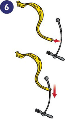 On each end of the Head Strap (near where it's attached to the Base), fit the tab into the hole in the Base.