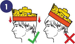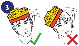 Before you put on the Crown, adjust the Head Strap roughly to the size of your head. Then pull the Crown down so that the front padding rests against your forehead.