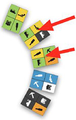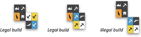 Each time you draft a new card, you must place it so at least one territory edge meets an existing territory edge in your town OR you may place your card such that it overlaps/covers a territory (or multiple territories) with your new card.