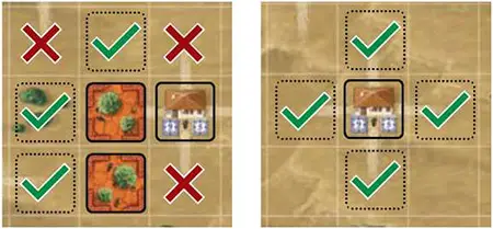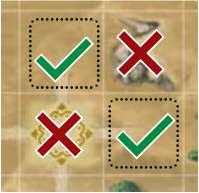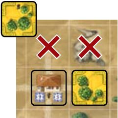 Each road leading from a Finca (as well as from a building site) must have a different colored plantation. (See image: Since there is already a lemon plantation next to the road on the right, an additional lemon plantation may not be built next to the upper road).