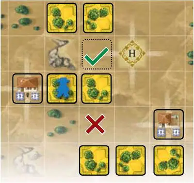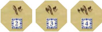 Tiles with wild horses are placed face-down in front of you. At the end of the game, the points shown on the tile are added to your final score.