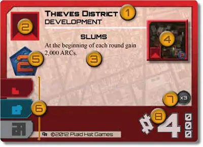 3 - Development Icon: This symbol matches the development draft card for this tile. The symbol helps players quickly find the draft card so that they can refrence the development's special ability.