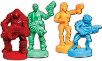 The game comes with plastic figures in 4 different colors. Each player chooses 1 color. These figures represent gang members on the board. The figures also depict 4 different races. A figure's race has no effect on gameplay. Only the figure's color matters.