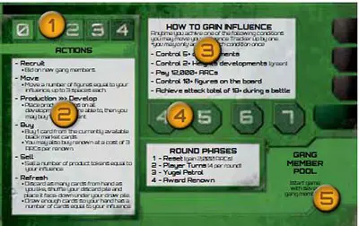 5 - Gang Member Pool: This is where a player places his figures: -at the beginning of the game, and -each time he gains a unit.
