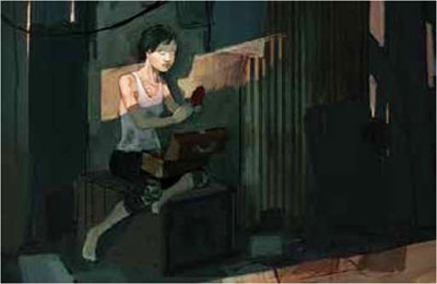 Min huddles in a dry corner, cradling the toolbox in her arms. Inside that red rusted box is everything she treasures: a faded picture of the man she called father, a ring of true silver she found on a dead child, a scrap of scented cloth that can trigger childhood memories, and the most precious of all, the mirror.