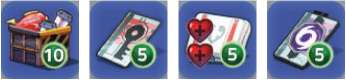 Points awarded by cards in their deck. (The top right corner of each card shows the amount it's worth).