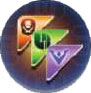 Many cards have an icon in the upper left corner 1, marking them as a member of one of three factions: