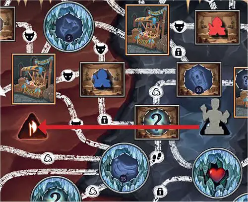 Some tunnels on the new board are marked with one or more Curse icons. If you move through such a tunnel, you must take a Curse token for each Curse icon shown.