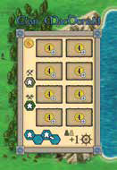 You start with three additional Merchants (five total) and river-crossing Shipping level for free. Furthermore, you gain £1 each time you trade at the Market (in the case of making a purchase, you receive the money before paying), no matter how many units you trade. If you use the Neighbourhood bonus and trade multiple types of Goods in one turn, you gain £1 for each type of Good traded.