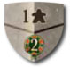 Gain 3 Glory for every two units on border spaces of the active map. In a game with 1-2 players, the shaded spaces (also marked with mist) are not part of the active map, thus all the spaces adjacent to the shaded spaces with mist are considered border spaces.