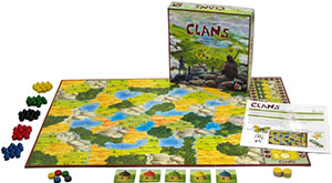 There are always 5 clans in play (regardless of the number of players), each clan identified by a color: red, blue, green, yellow, and black.