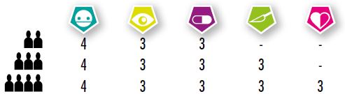 Example: A red Doctor can treat a red Patient on her own, but would need 3 Nurses to treat a white Patient. An orange Doctor would need 2 Nurses to treat that same white Patient.