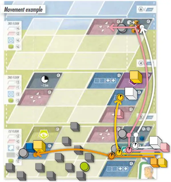 - There is no upper limit on time spent. If you go beyond 5:55, use something to note the +6:00, move your Time cubes back to 0:00, and continue from there.