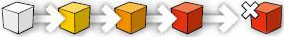 Patients (small cubes) are white, yellow, orange, or red. Red are in the most critical condition.