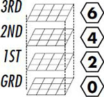 Building: Each active Room Module scores according to its floor. A Room is active if it can host Patients, ie. is adjacent to an Office and a Service Module.