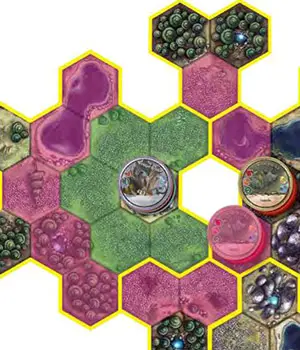 Notice that the second war briar is not within range. This is because range is not counted over missing hexes (sky), so the spire must count around this space.