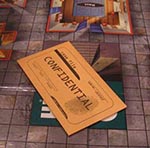 Shuffle each group face-down, draw one card from each group and slide them into the "Case File Confidential" envelope. Place it onto the "X" in the center of the board.