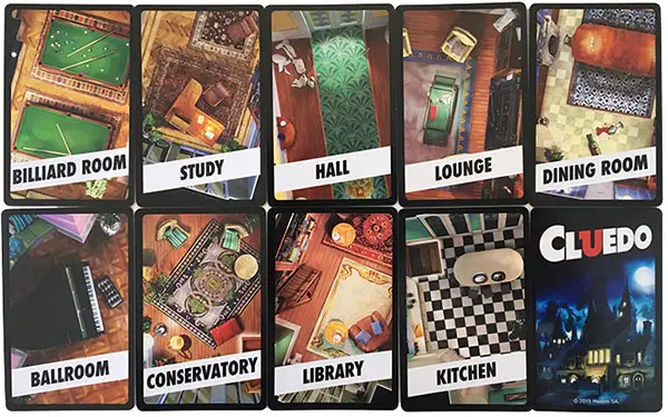 - Pack of cards: 1 card for each of the 6 Suspects, 6 Weapons and 9 Rooms