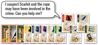 If nobody has any of the evidence cards you asked about, you know that one or both of those pieces of evidence is under the crime card. See Tips and Tactics for details.