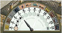 5. Place the Shift hand onto the leftmost hand outline of the Shift Clock, so that it points to the circle space marked "I". Then place the Scoring marker onto the leftmost circle space of the Shift Clock.
