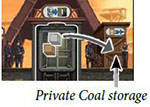Move 1 Coal cube from your Private Coal storage to an Order card in your Outstanding Orders area. (For this the same rules apply as when moving the cube from your Pit cage to the Order card).