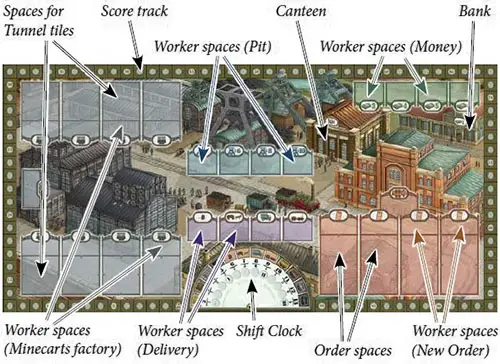 - If the stack of Tunnel tiles or the stack of Order cards should run out, the respective spaces are simply not refilled and stay empty.