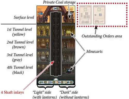- If, when a player acquires a Tunnel tile, the supply contains fewer Coal cubes of the color he needs to fill the Minecarts on that tile, the player may place 1 Coal cube of any color onto each Minecart on that tile which he cannot fill properly. This does not affect any costs paid for the tile.