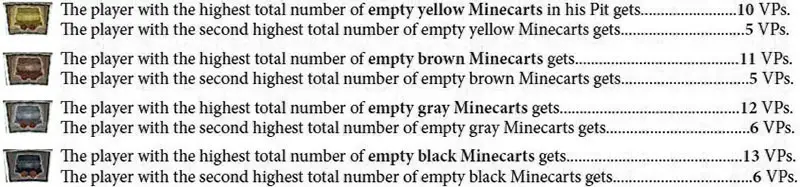 The third 4 elements reward the majority of empty Minecarts (i.e. no Coal cube may be on it) in the players' Pits: