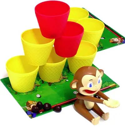 Play when another player is about to shoot. Choose one cup. If the player lands a coconut in this cup, he takes it. If the player misses, he gets noth- ing - even if he hits a different cup!