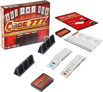 Each player receives a rack, a sheet from the notepad, and a Code 777 card. They place the rack in front of them with the side on which the tiles are to be placed pointing away from them.